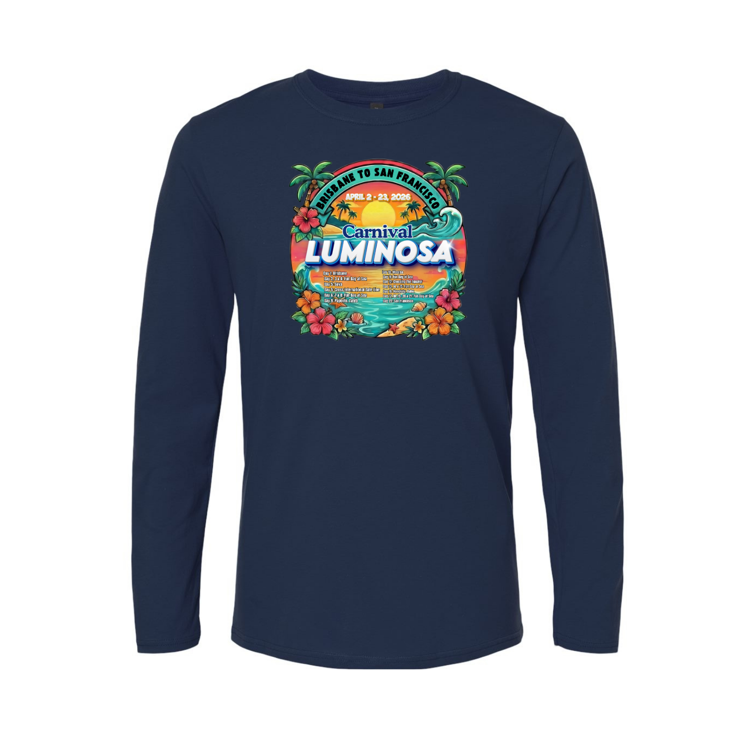 Carnival Luminosa Brisbane to San Francisco Transpacific April 2 - 23, 2026 Cruise Ringspun Cotton Long Sleeve T-Shirt